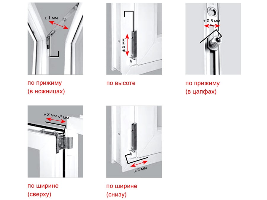 Даже в случае исправности фурнитуры, должного ухода за ней и обработки смазкой в ходе эксплуатации возникают перекосы, провисания, неплотное прилегание створки к раме. Кроме того, рекомендуется дважды в год перед наступлением теплого или холодного сезона устанавливать летнюю или зимнюю степень прижима створок. В этом случае окна не дают проникнуть морозному воздуху в комнаты и наоборот, увеличивают желательный воздухообмен в благоприятный для этого сезон. Оконная фурнитура снабжена элементами, которые позволяют устранять провисания и вносить необходимые изменения по степени прижима.