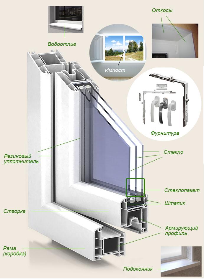 Из чего состоит пластиковое окно – схема в разрезе, детали