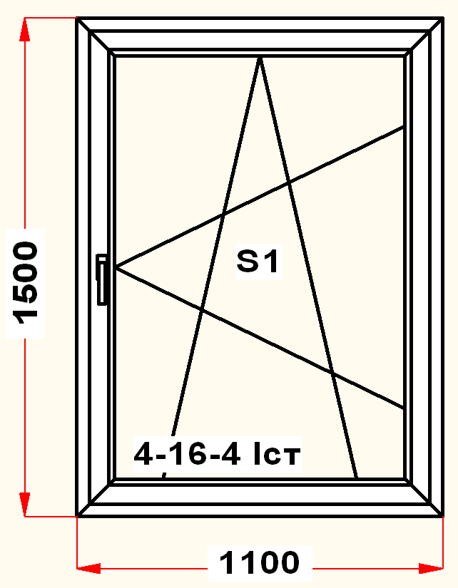 Помимо общего размера окна необходимо правильно рассчитать параметры открывающейся створки. Нежелательно делать ее менее 450х450 мм и более 900х900 мм.