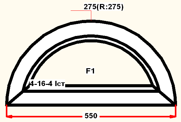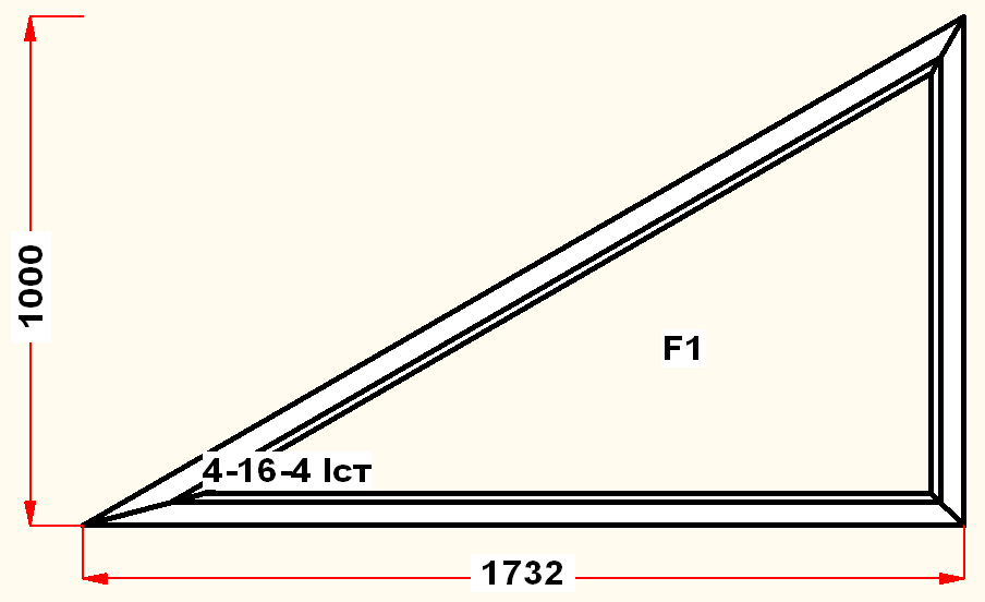 Минимальная величина острого угла длятреугольного окна составляет 30 градусов, что определяется условиями створки. |