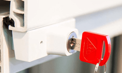 Данный вид защиты может быть установлен на уже смонтированные окна самостоятельно. Врезной детский замок позволяет зафиксировать створку как в закрытом, так и в открытом положении, для фиксации используется ключ. Необходимо закрыть замок на ключ, располагающийся на створке, вынуть ключ и положить его в недоступное для ребёнка место.